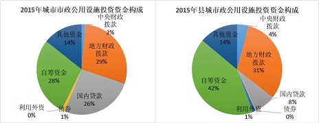 目前,市政公用設施建設投資已由1978年前單一的政府財政投入逐步向國內(nèi)貸款、利用外資、發(fā)行債券及企業(yè)自籌等多種渠道拓展。目前市政設施建設投資已經(jīng)形成多元化局面,政府投資、銀行貸款、民間資本成為主要力量,三者投資比例占投資總額的85%左右。同時,縣城與城市相比,較難獲得銀行貸款,主要靠自籌資金,這也是縣城的市政公用設施建設不管是從建設總量,還是從增長率來看都遠不及城市市政建設的原因之一。